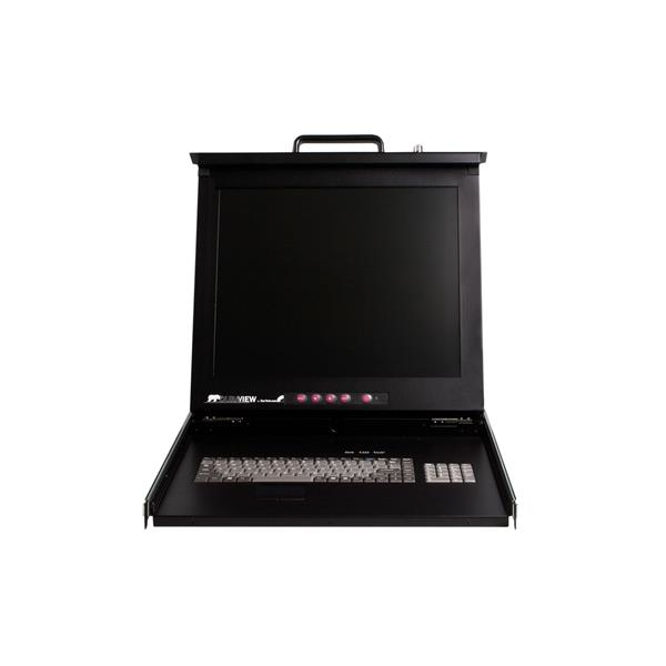 La consola 1U con pantalla LCD de 17" para montaje en rack, modelo RACKCONS1716, permite el control centralizado de servidores y conmutadores KVM mediante un conmutador KVM de 16 puertos, un monitor LCD de 17", teclado completo (106 teclas) y panel táctil/ratón, todo combinado en un espacio de 1U de un rack o armario estándar de 30 pulgadas (o más) de profundidad.